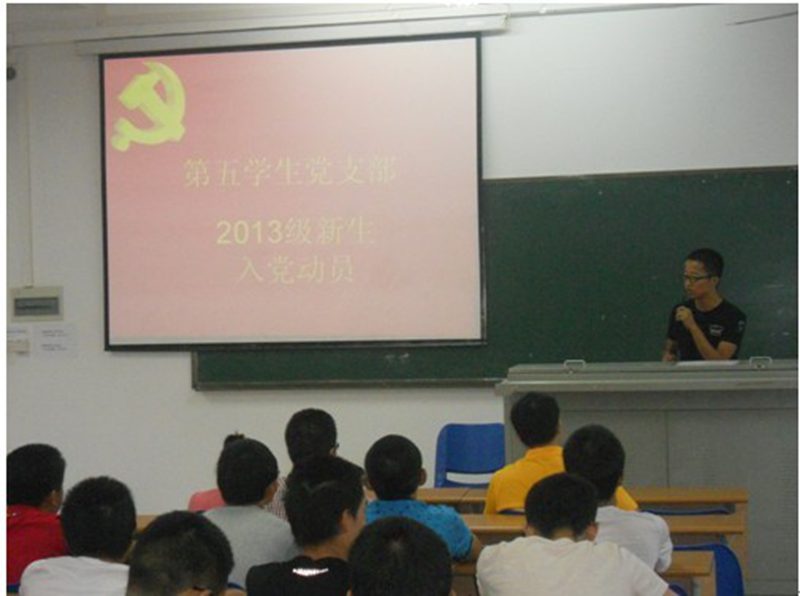 2013年10月28日下午四点半,allwincity万象城官方网站第五学生党支部2013级新生入党动员大会在4-202举行。allwincity万象城官方网站第五学生党支部书记崔建兵老师、党支部全体支委和2013级全体新生参加了此次会议,本次会议由党支部纪律委员张小铮主持。