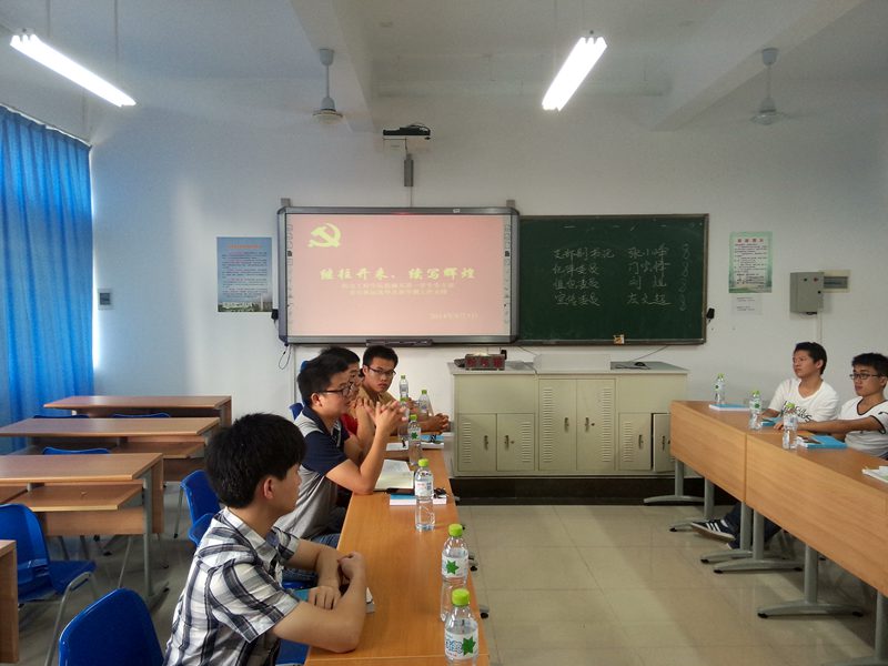 2014年9月9日下午4:30,allwincity万象城官方网站机械系第一学生党支部新学期召开以“继往开来、续写辉煌”主题的党建工作及支委换届大会。机械系第一学生党支部崔建兵书记及全体党员,预备党员共18人参加了本次会议。会议有党员张小峥主持。
