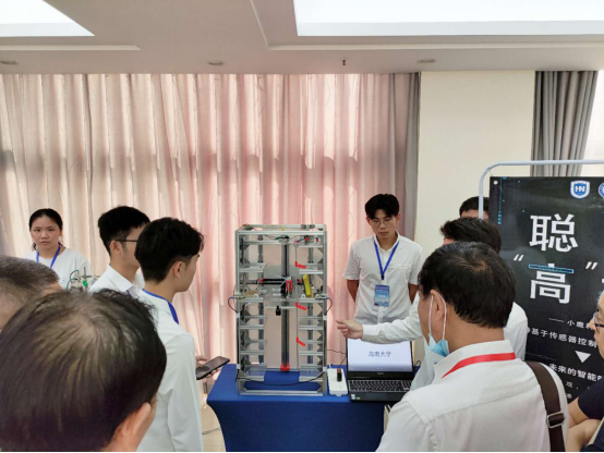 本次比赛分现场问辩和答辩两个环节,现场问辩环节中,7位评委一起进行问辩,参赛学生展示参赛作品的功能,介绍功能原理和亮点;答辩环节中,参赛学生进行PPT答辩,评委提问并仔细检查说明书和图纸。