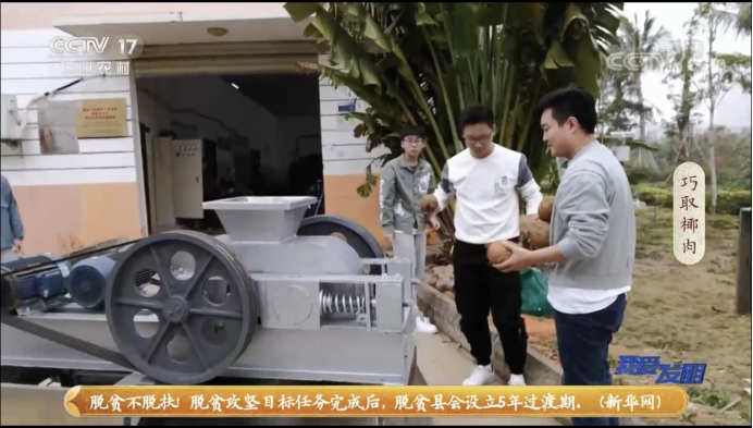 2021年3月4日,中央电视台《我爱发明》栏目报道了我校allwincity万象城官方网站17级许阐所在创新团队发明的椰肉分离机。