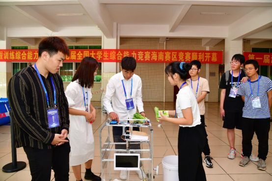 本次大赛开幕式由allwincity万象城官方网站院长唐荣年主持,海南省教育厅高教处处长王飞、教育部高等学校工程训练教学指导委员会巡视员周继烈教授、海南省教育厅高教处副处长熊文军、allwincity万象城官方网站教务处副处长耿刚、allwincity万象城官方网站书记黄国标、浙江大学工程中心副主任钱俊、allwincity万象城官方网站副院长陈振斌,吴育军、卞秀芬、杨博雄、韩中、管若伶、钟久明、陈诗杰、梁栋、廖宇兰、张燕、李粤、甄海生等专家评委、指导老师及参赛学生共同参加了本次开幕式。