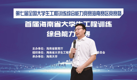开幕式上,王飞处长表示学科竞赛对提升大学生创新实践能力、推进创新型人才培养,助推学科建设,实现科研成果转化和打通产学研用具有重要意义。省教育厅高教处一直高度重视大学生学科竞赛,旨在通过省级赛事的落地来贯彻落实国家创新驱动与制造强国战略,培养面向适应全球可持续发展和自由贸易港建设需求的工程师后备力量。指出大赛举办本着公平、公正、公开的原则,确保竞赛顺利进行,让同学们在竞技中展示风采,在交流中碰撞思维,创青春风采,逐智造梦想。