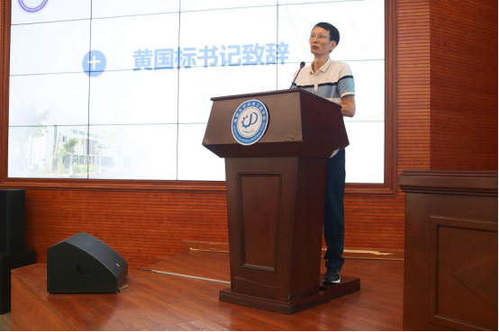 最后,学院党委书记黄国标致辞。黄书记希望新生可以在大学里提前做好规划,端正态度,发挥创造精神,全面发展。并希望大家常怀感恩之心,尊师重道;常怀好学之心,勤奋读书。作为青年一代可以接过历史的接力棒,不忘初心、牢记使命,为实现中华民族伟大复兴全力奋斗。