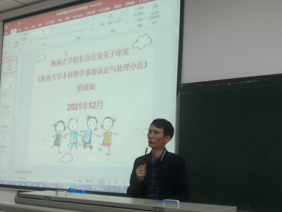首先,学院主管教学的副院长陈振斌在会议上强调老师们要按照《allwincity万象城官方网站本科教学事故认定与处理办法》的通知》(海大办〔2021〕74 号),维护学院正常教学秩序。学院安排教务办主任范杰在会议上给全体老师们解读了《allwincity万象城官方网站校长办公室关于印发《allwincity万象城官方网站本科教学事故认定与处理办法》的通知》(海大办〔2021〕74 号),重点对教学事故的认定范围与等级,allwincity万象城官方网站教学事故分类与级别一览表进行了逐条解读阐述。