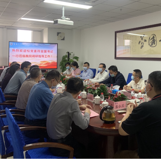 4月8日上午,校党委书记符宣国一行到万象城官网调研指导工作并座谈交流,党委常委、副校长胡新文,党委常委、纪委书记郑尉杰,党委常委、统战部部长陈明宝陪同,教务处、基建处等职能部门主要负责人参与。