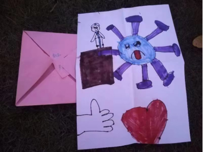 教师骨子里的无私和严谨被这两位老师体现的淋漓尽致。他们严格听从社区安排,与当地工作人员紧密合作,在实践中针对发现的防疫问题,积极沟通快速解决,志愿服务工作受到当地居委会和居民们一致认可。在某次配送物资时还收到了小朋友精心制作的图画礼物。