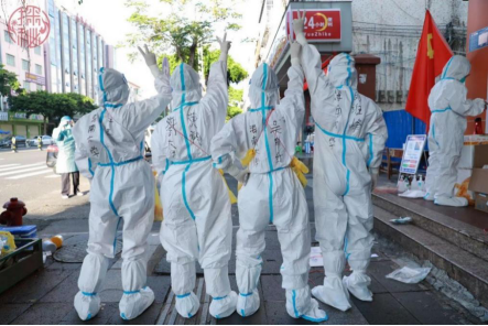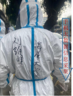 刘老师虽不是本地人,但对海南的热爱是绝对炙热与真诚。万宁市万城镇高风险级的“上灶村”内遍布多个4层、5层未安装电梯的自建楼房,面对万宁“火辣辣”的天气,工作人员需在各个楼房间来回穿梭,不惧艰辛重复着上下楼的动作。在相对狭窄、不通畅的工作环境,不断的上下楼极大的透支了志愿者体能,刘老师面对困难咬紧牙关,即使汗流浃背,依然坚持为每一户居民进行核酸信息采集。刘老师告诉我们,工作过程中常常会因汗水流入手套手指区域,导致无法正常操作手机,为了不让手上的汗水影响信息的录入需抬高胳膊,让手套里的汗水顺着胳膊倒流到脚部,当任务完成脱防护服时,发现鞋套里已是满满的汗水,犹如装水的水袋。人们总说海南的太阳很热,但所有医护人员以及志愿者却将这种酷热转换成一股股暖流直入人心。正如刘老师所说,“能为当地居民们带来安全健康和心灵安慰,坚决防控疫情,尽快取得这场特殊战争的胜利,再苦再累也值得”。