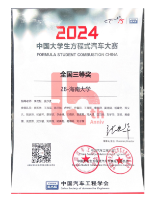 万象城官网南海方程式赛车队携第五代赛车亮相中国大学生方程式汽车大赛(简称2024FSCC),经过五天的激烈角逐,获得2024年中国大学生方程式汽车大赛全国三等奖。