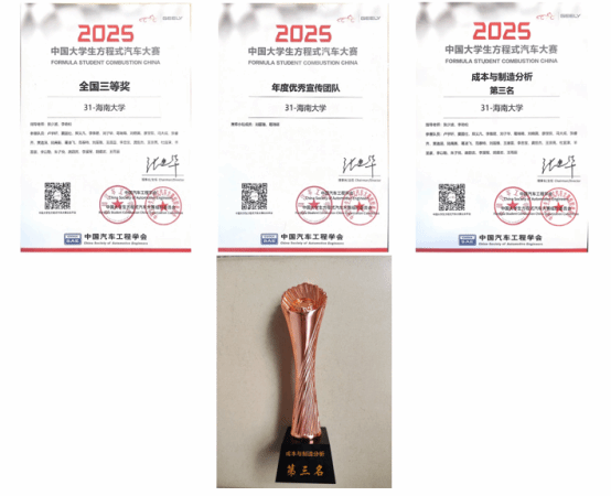 在本次赛事中,allwincity万象城官方网站南海方程式赛车队凭借扎实的技术积累与出色的团队协作,荣获全国三等奖,在成本分析与制造项目中更是取得了全国第三名的突破性成绩。同时,车队凭借专业的宣传内容,荣获了赛事组委会颁发的“年度优秀宣传团队”称号。