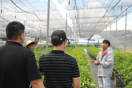 接着在符厂长的带领下,调研团参观了集体经济中收益较好的兰花文化产业园,了解到园内种植了二十多亩的花草,除了泼墨、火焰兰等样式丰富的兰花,还有空气草、铁皮石斛等花草。兰花产业园属于村子的集体经济,园区从公司买来幼苗,经过四个多月的培养后将花枝或整支植株再卖回公司。平日里,会号召村民到园区帮忙除草、施肥等,到了年末再将分红分给村民。近几年来,兰花产业园的发展势头极好,分红从每人500到每人800,再到2020年每人1000。接着实践团还来到园区的展室,欣赏了美丽的兰花盆栽。